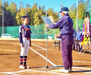 秋季大会の閉会式で優勝した1部(6年生以下)チームが優勝旗、トロフィーを授与頂きました!子供達の成長が最後に優勝という結果が出ました!